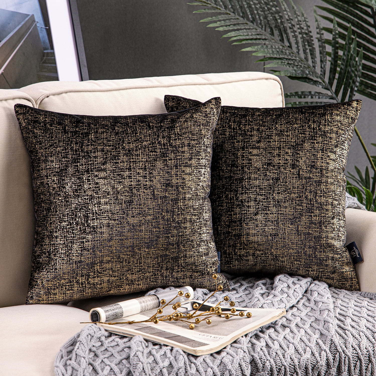 Phantoscope Bronzing Gold Foil Printed Cut Pile Velvet With Gilding Metallic Shiny Decorative Throw Pillow 20 X 20 Black 2 Pack Walmart Com