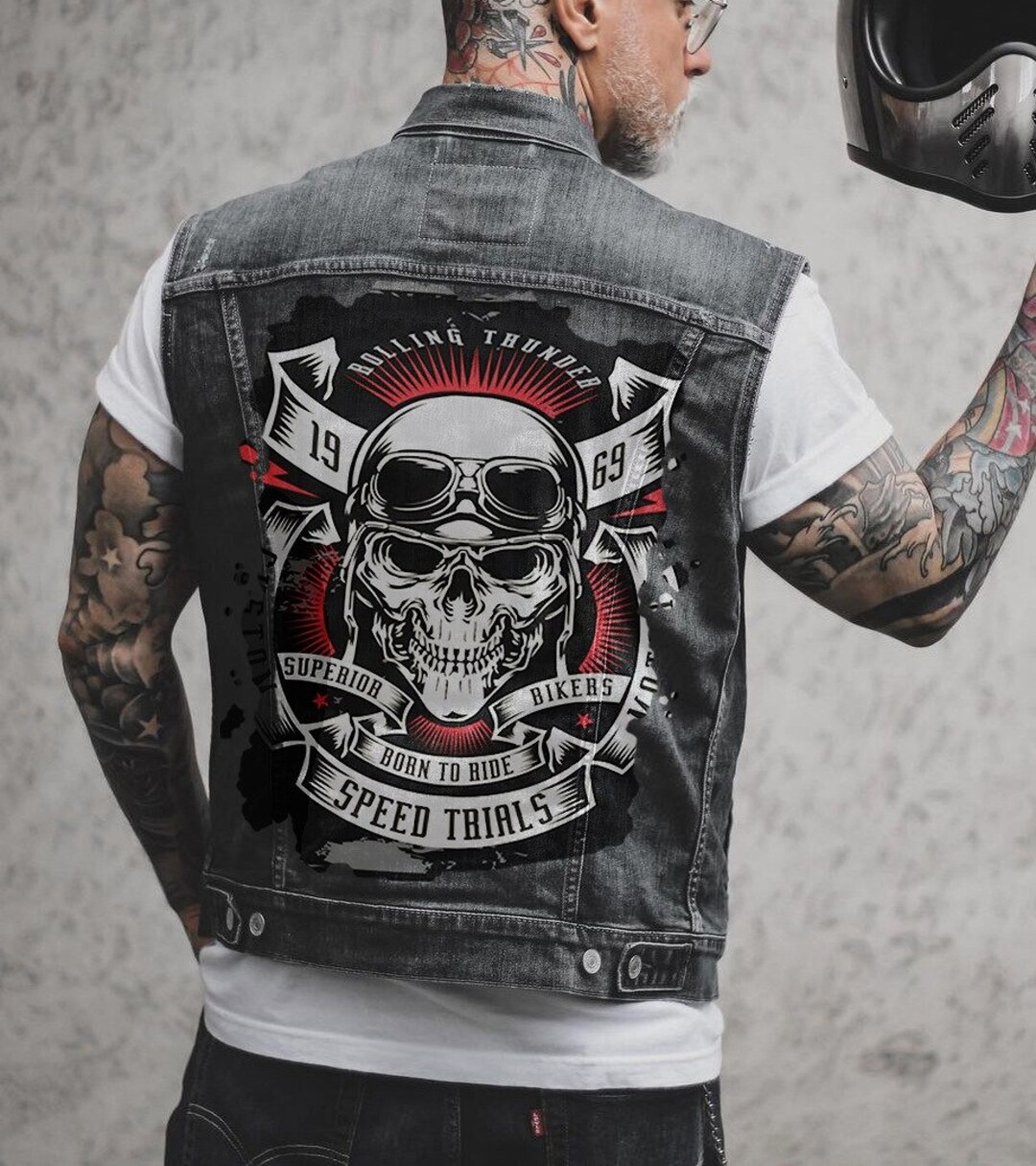 Large Size Men S Denim Vest Jacket Punk Locomotive Etsy Uk